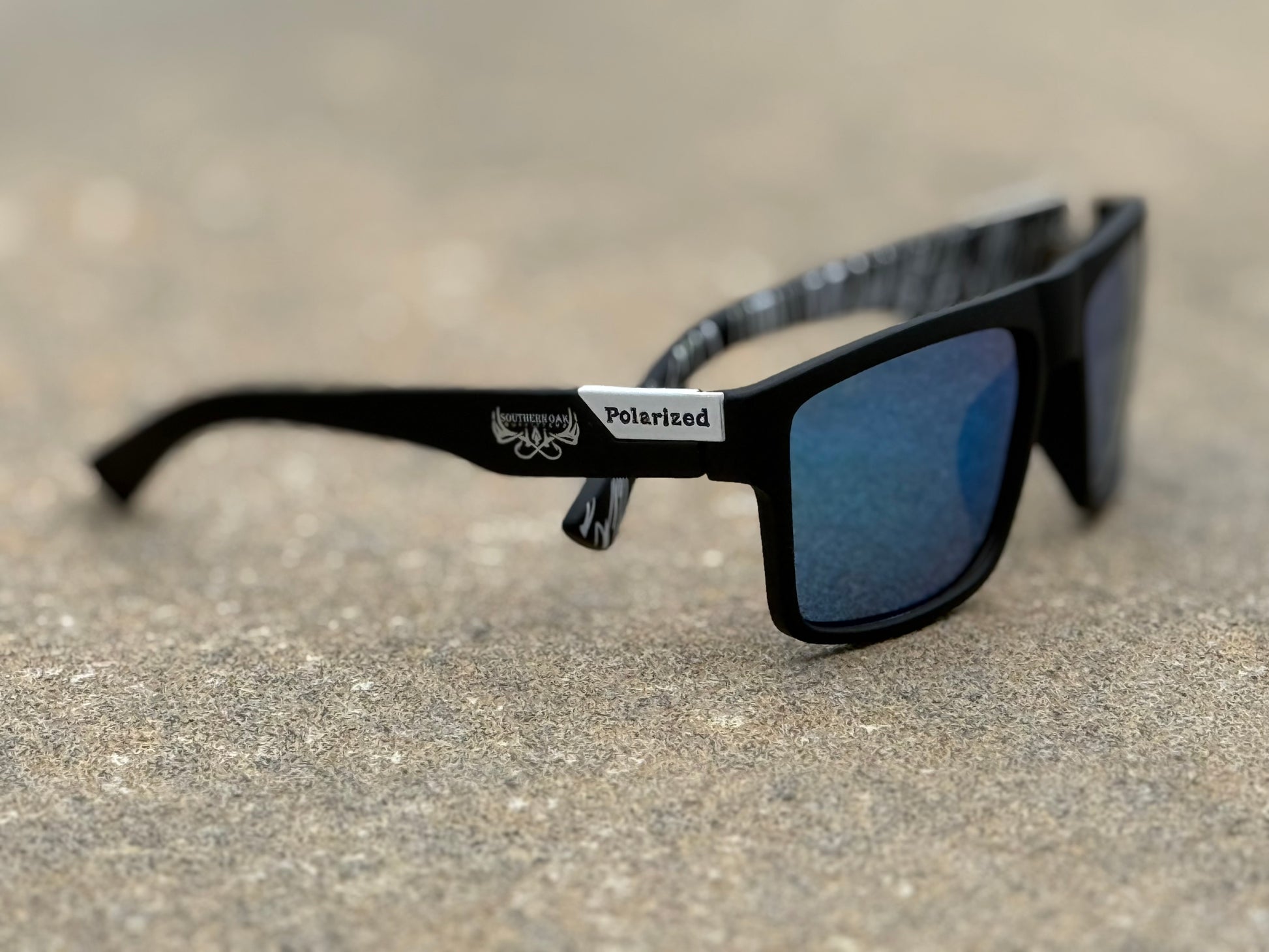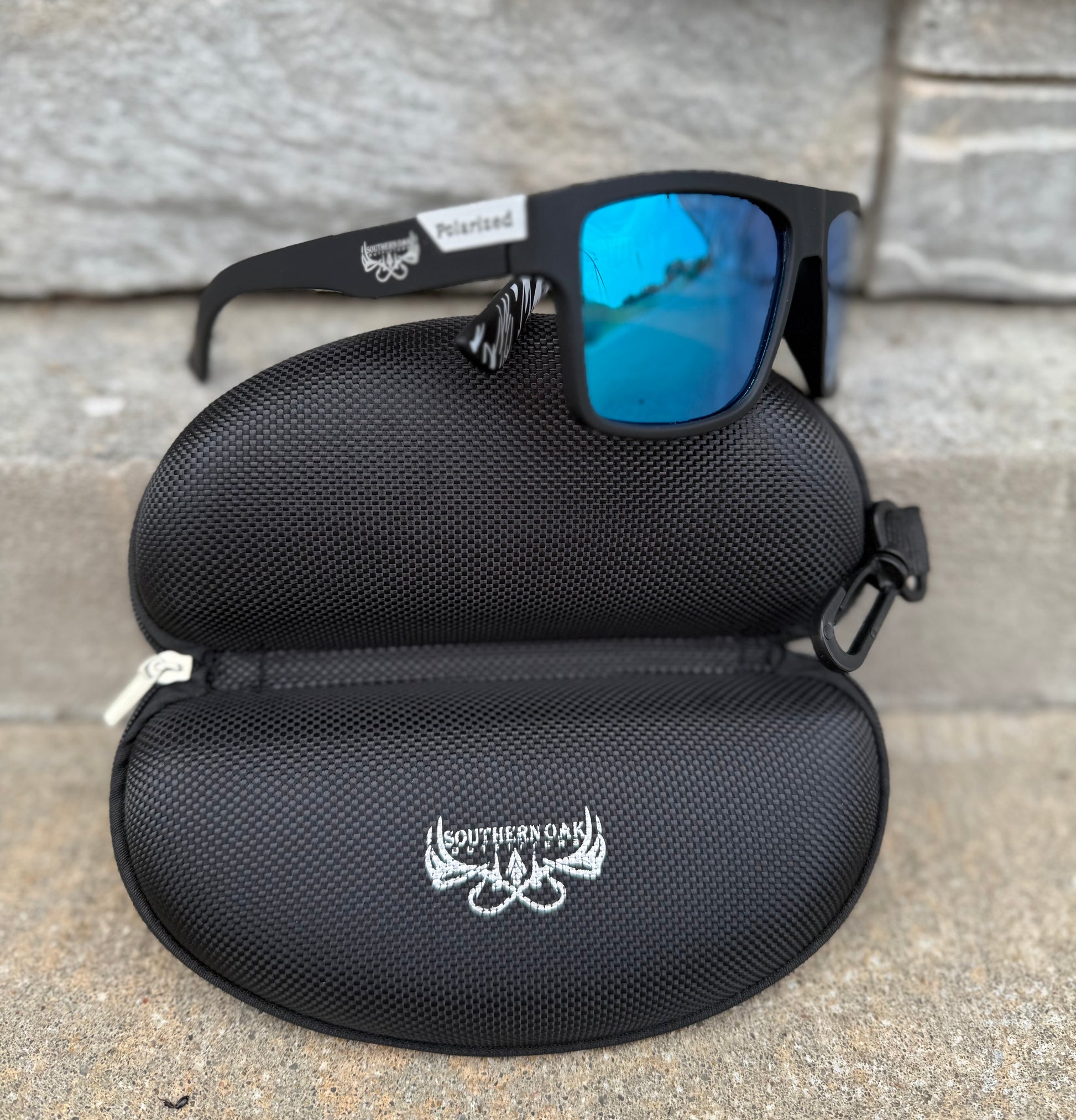 See the South in a whole new light with Southern View sunglasses from Southern Oak Outfitters. These aren't just sunglasses; they're your new go-to for clear, protected vision. Designed for the modern man, Southern View features polarized lenses with a cool blue exterior, reducing glare and enhancing clarity, all while safeguarding your eyes from the sun's rays. Each pair comes with a logo-emblazoned earpiece, a soft cleaning cloth, and a durable hardshell case. Whether you're casting a line, hitting the open road, or just soaking up the sun, do it with Southern View.